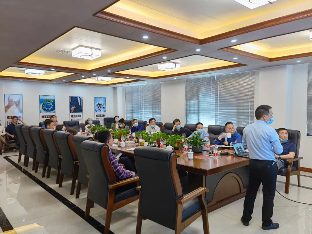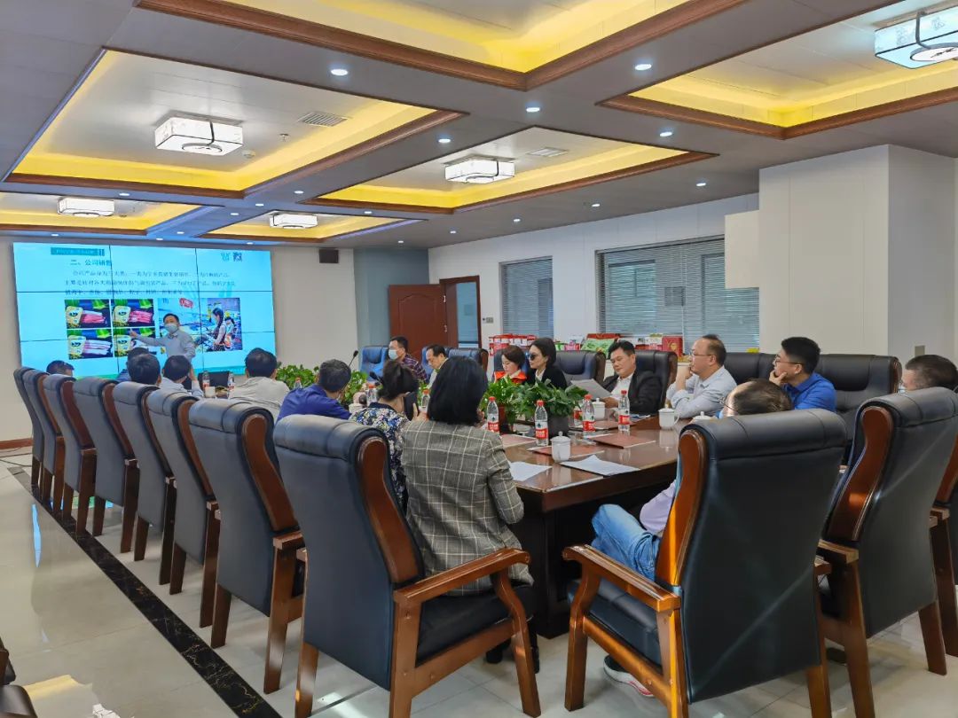 图为曾青华董事长汇报宁乡猪种业发展情况