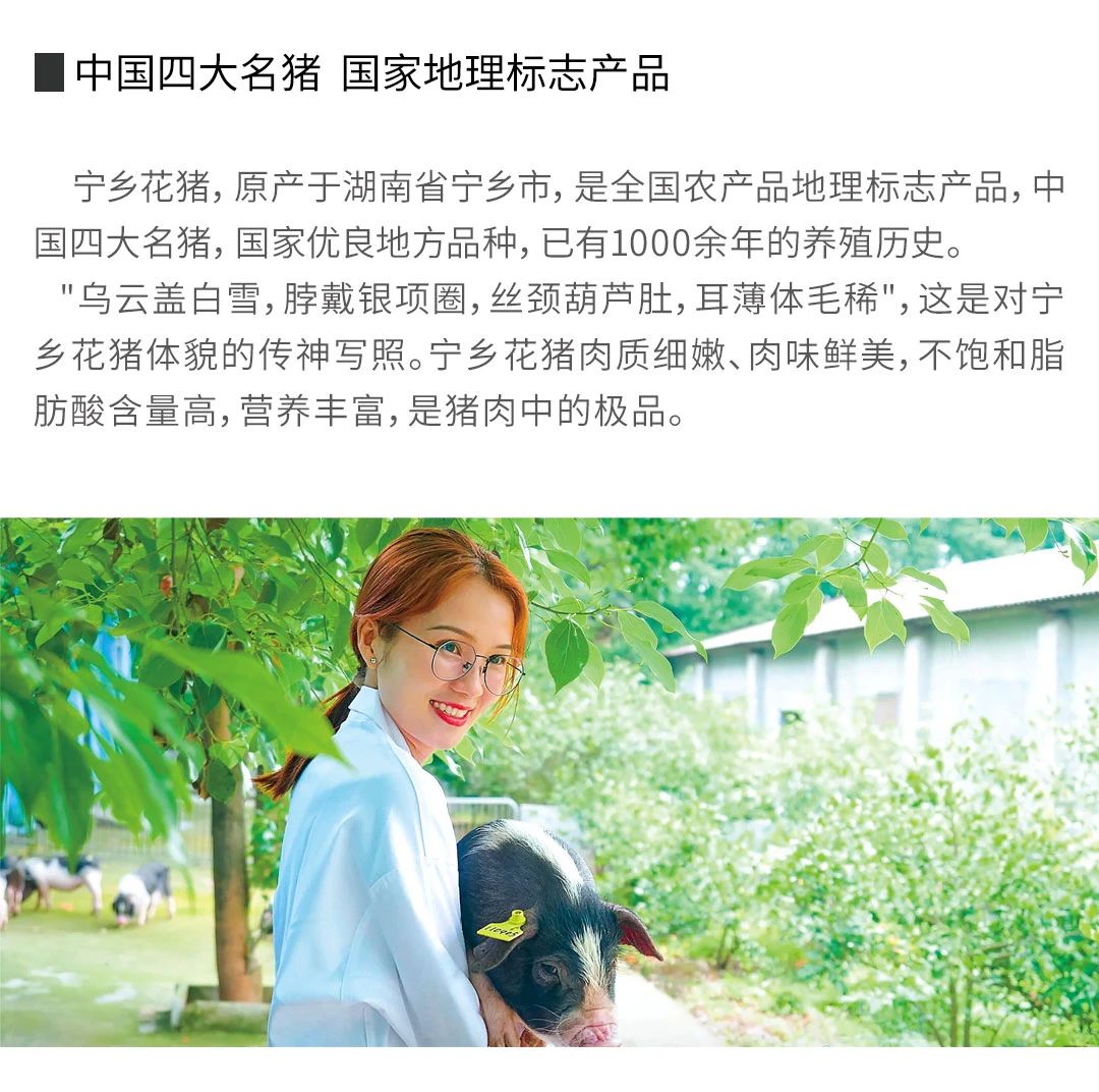 神奇宁乡,千年花猪,青山绿水,鸟语花香的地域环境,日出而作,日落而归的农耕生活,千百年来,日月轮转,厚重的人文色彩和悠久的蓄养历史造就了中国四大名猪之一——宁乡花猪。